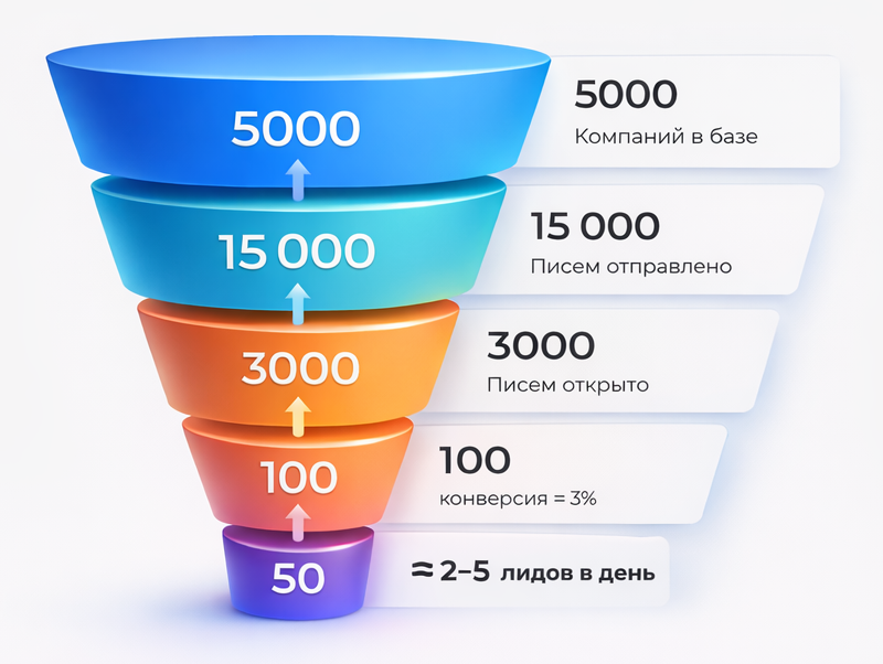 При 20 рабочих днях это: 2–5+ лидов в день